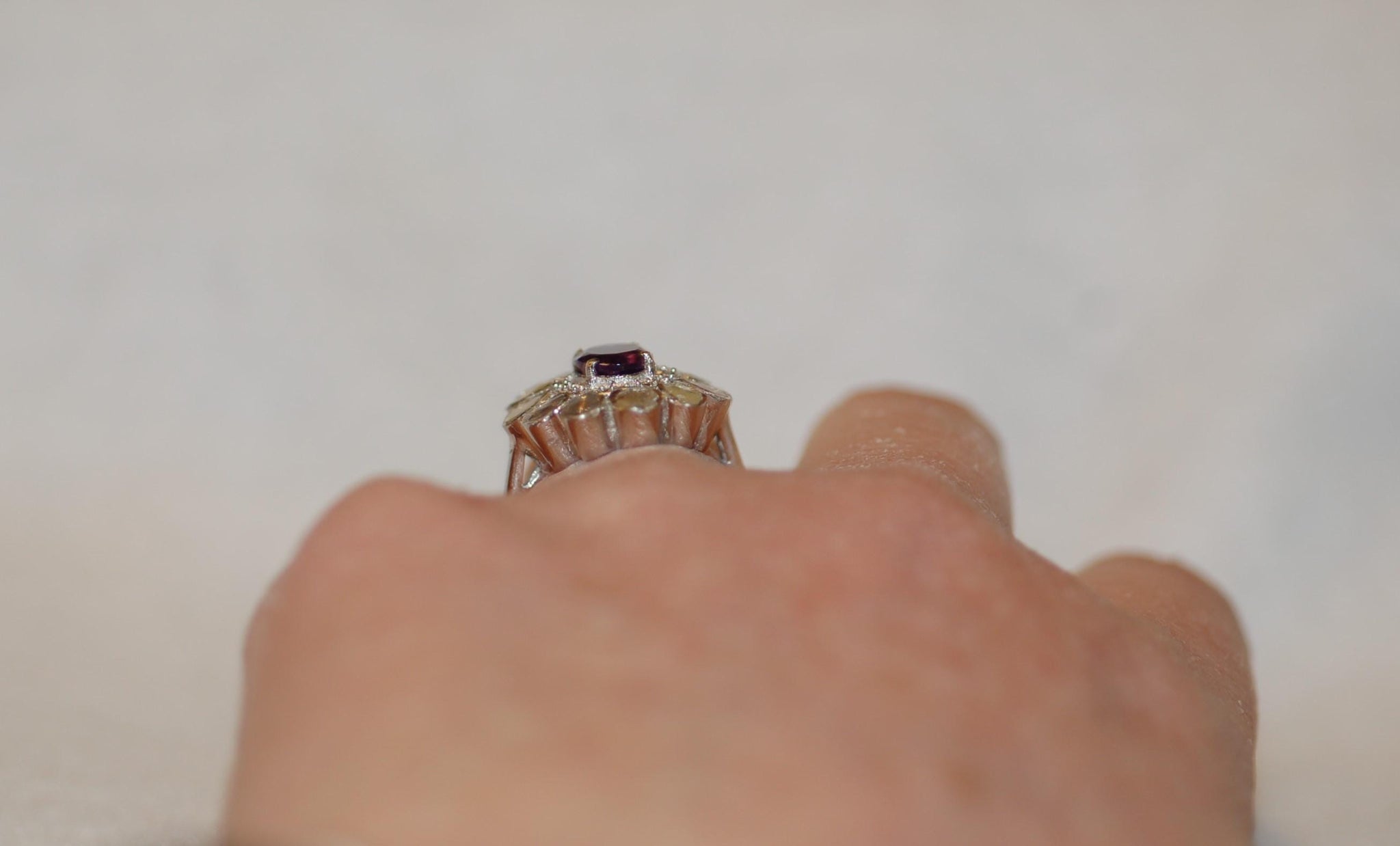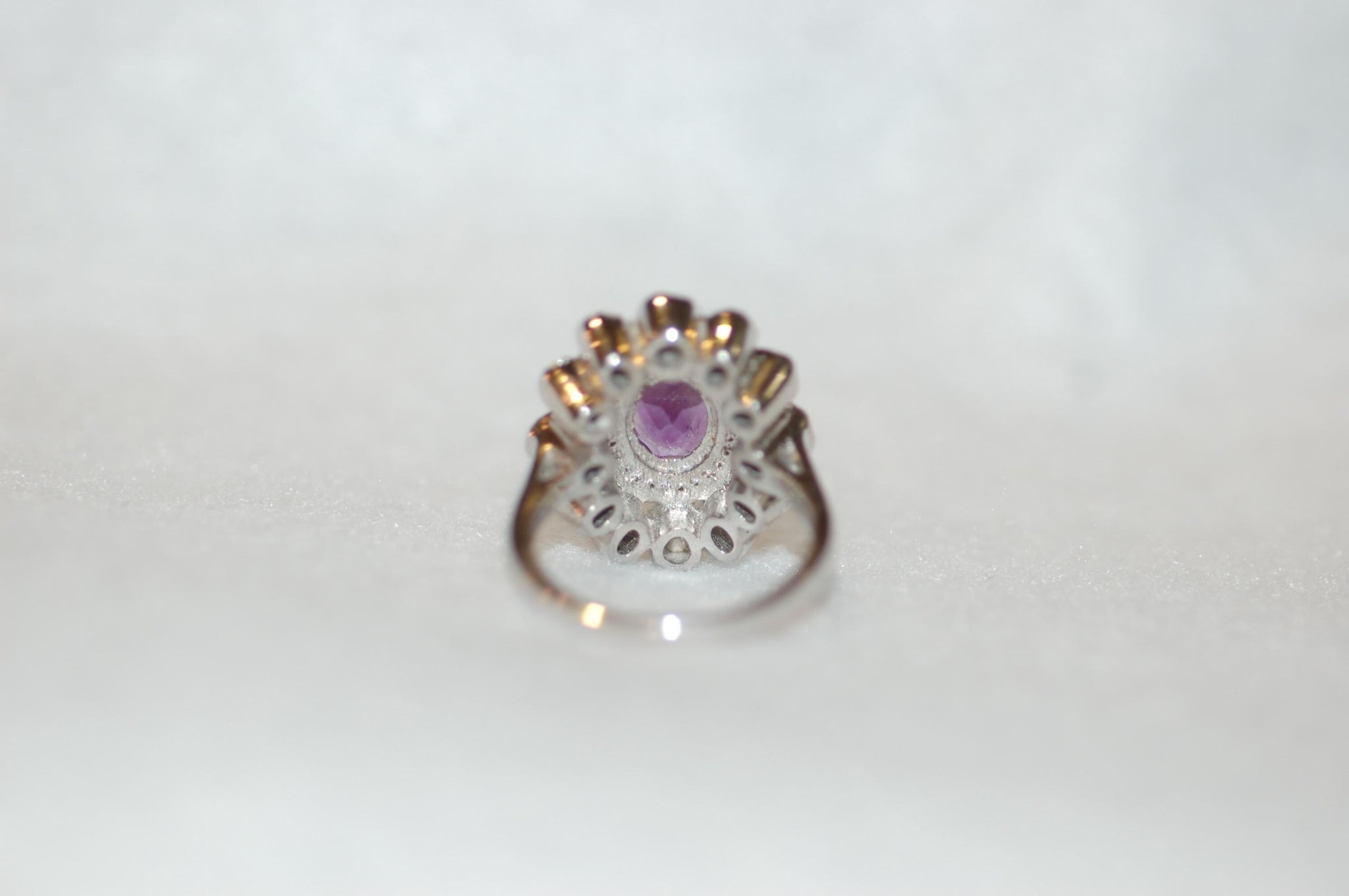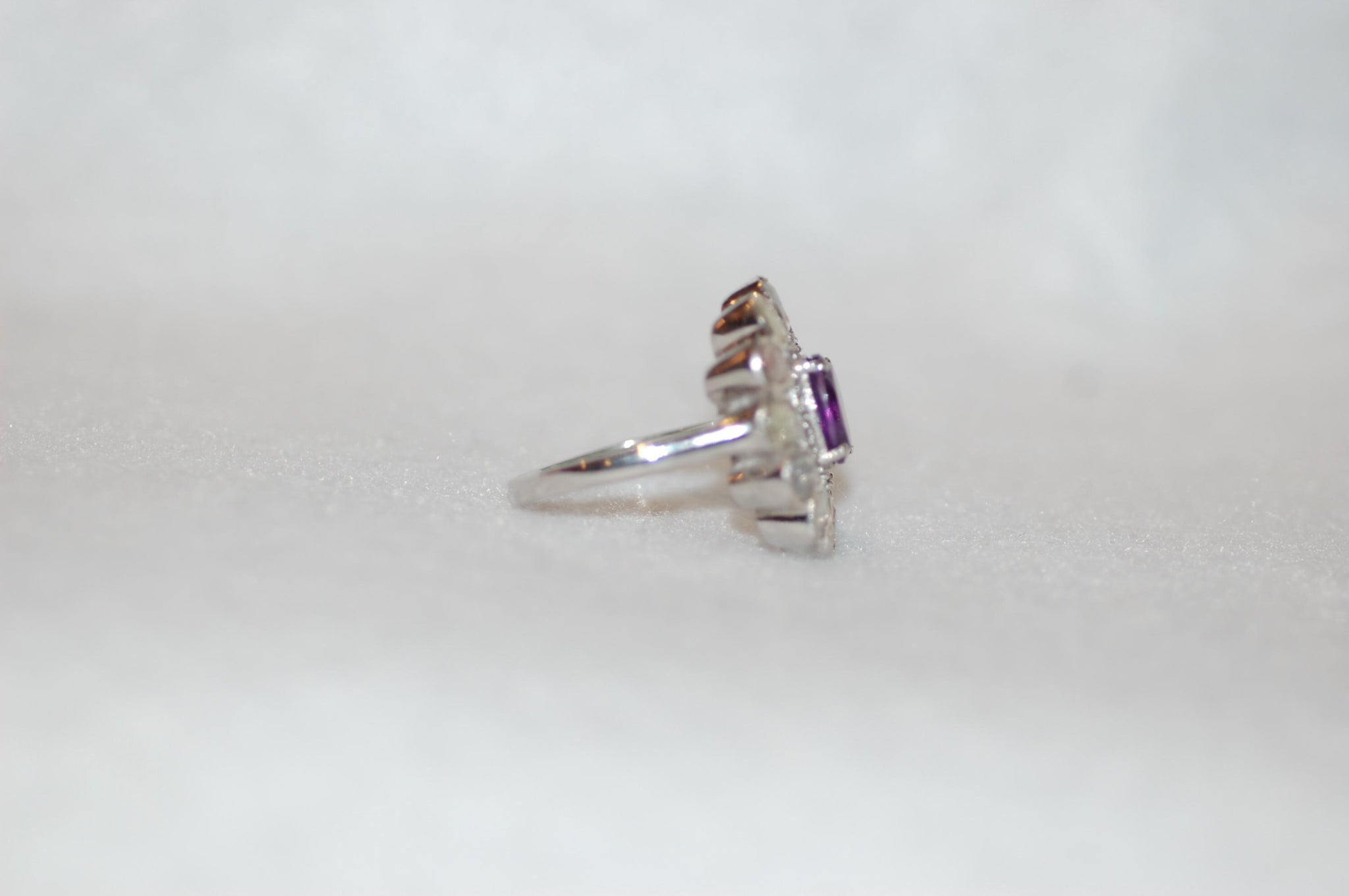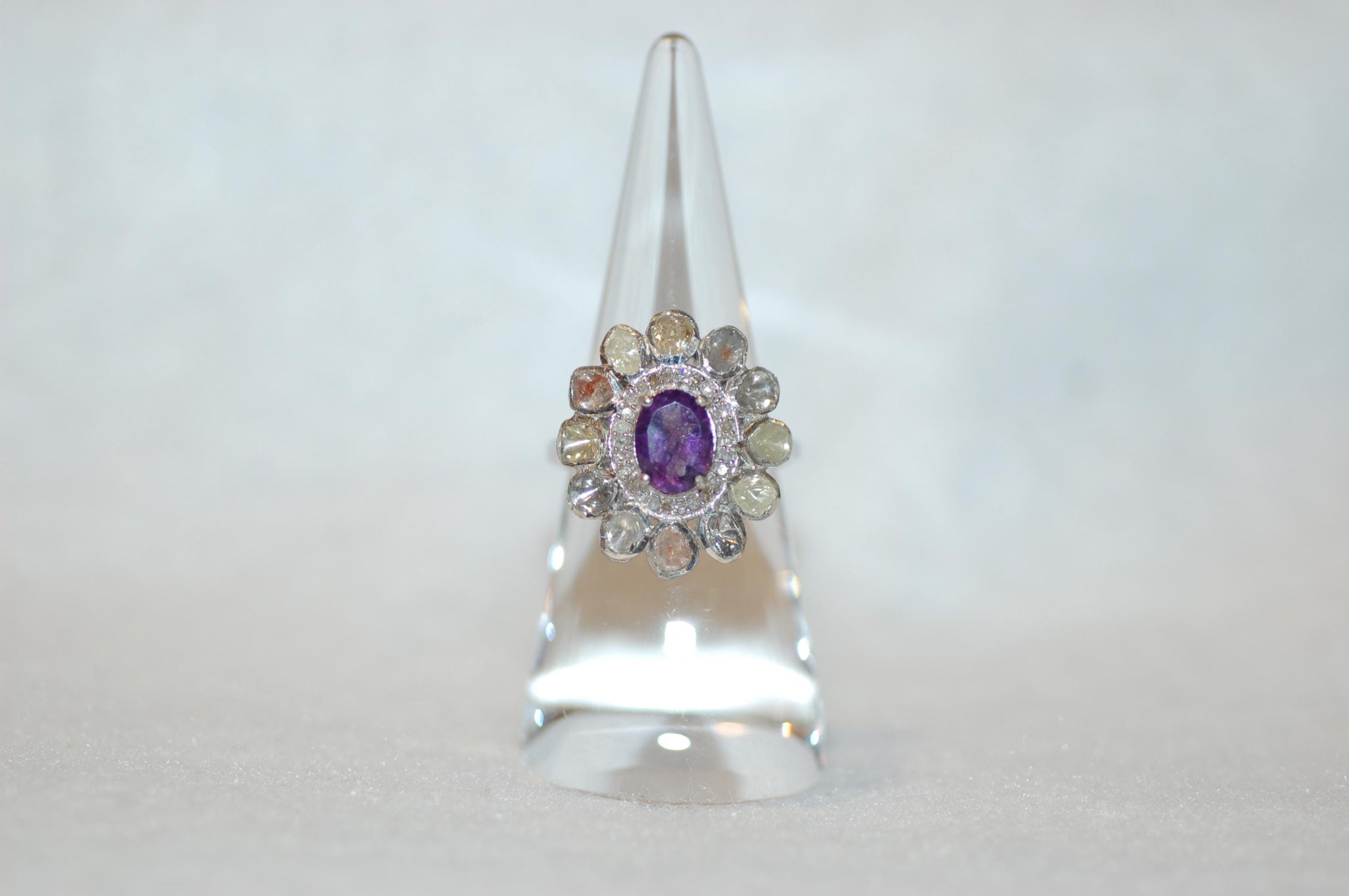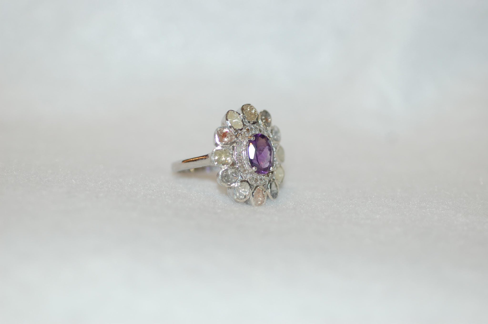 Amethyst and Rose Cut Diamonds Flower Ring