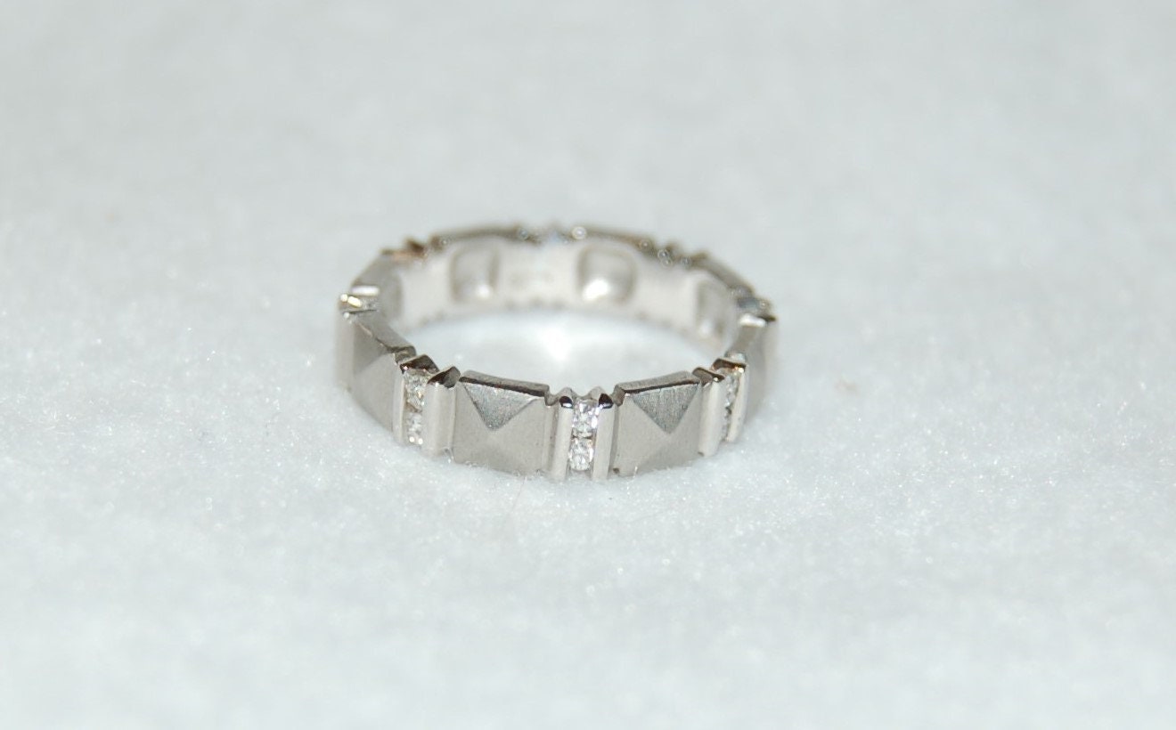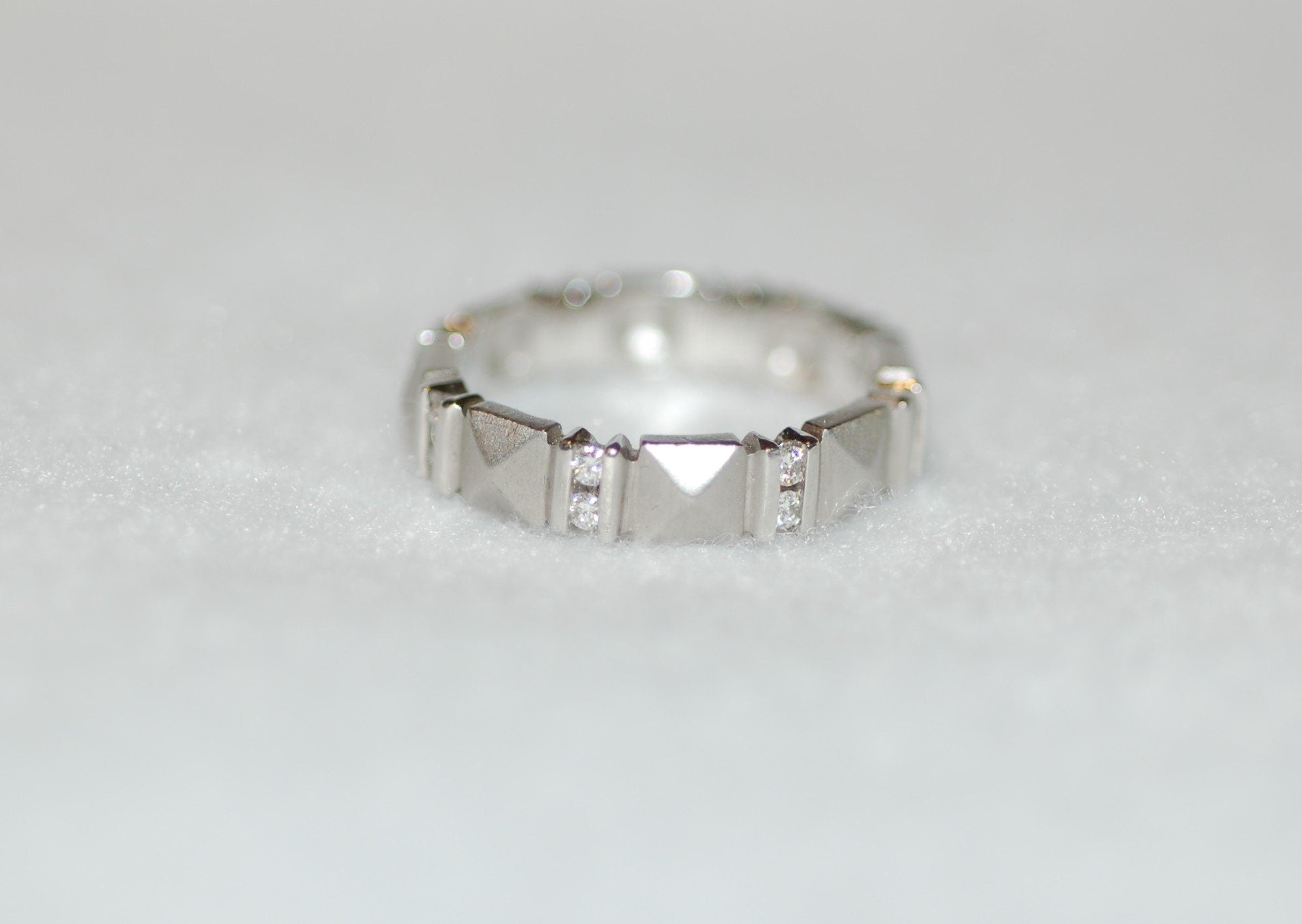 Chris Correia Fine Jewelry's signature Platinum Diamond 'Sugarloaf' stack band ring features channel set diamonds. Perfect for a wedding band or stacking ring. .24ct diam, platinum, size 6.5